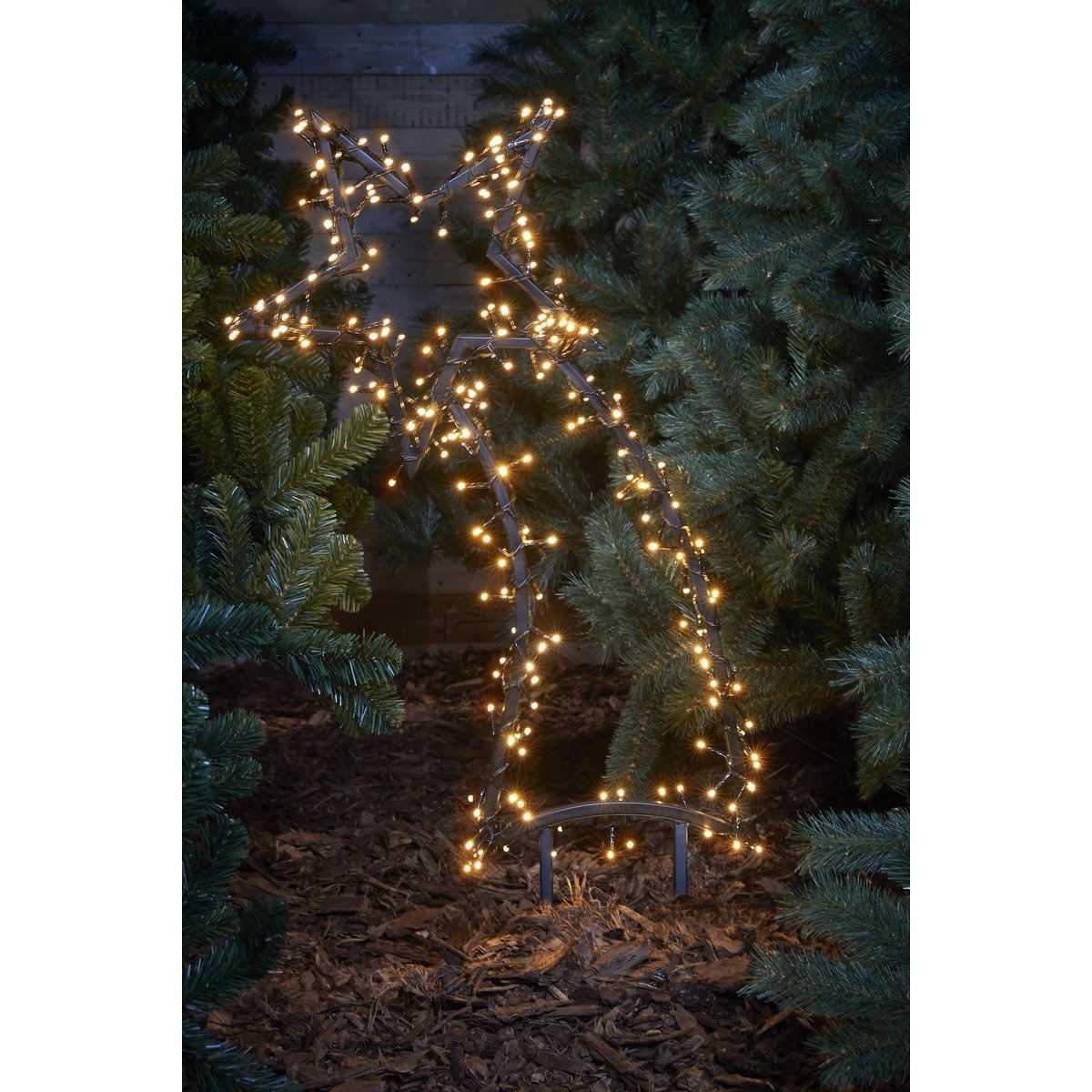 De stervormige tuinsteker van Luca Lighting is een echte sfeermaker tijdens de mooiste, maar ook donkerste dagen van het jaar. De tuinsteker met verlichting is onderdeel van de Garden d'Light collectie: een serie van koppelbare kerstverlichting tot een maximum van maar liefst 1500 LED lampjes. Ideaal om jouw hele tuin een make-over te geven! Deze vallende ster telt 225 LED lampjes die een gezellig, warm wit licht uitstralen. Het frame is gemaakt van zwart metaal, waardoor je in het donker alleen nog maar de lampjes ziet. Je kan de tuinsteker door middel van de twee pinnen in de grond steken, maar deze zijn ook te verwijderen zodat je hem kan ophangen. Verder kan je met de meegeleverde adapter een timer aanzetten en jouw favoriete stand kiezen uit 8 verschillende opties. Wat een opties! De tuinsteker in de vorm van een vallende ster heeft een afmeting van L45 x H101 cm. Het aansluitsnoer heeft een lengte van maar liefst 8 meter.