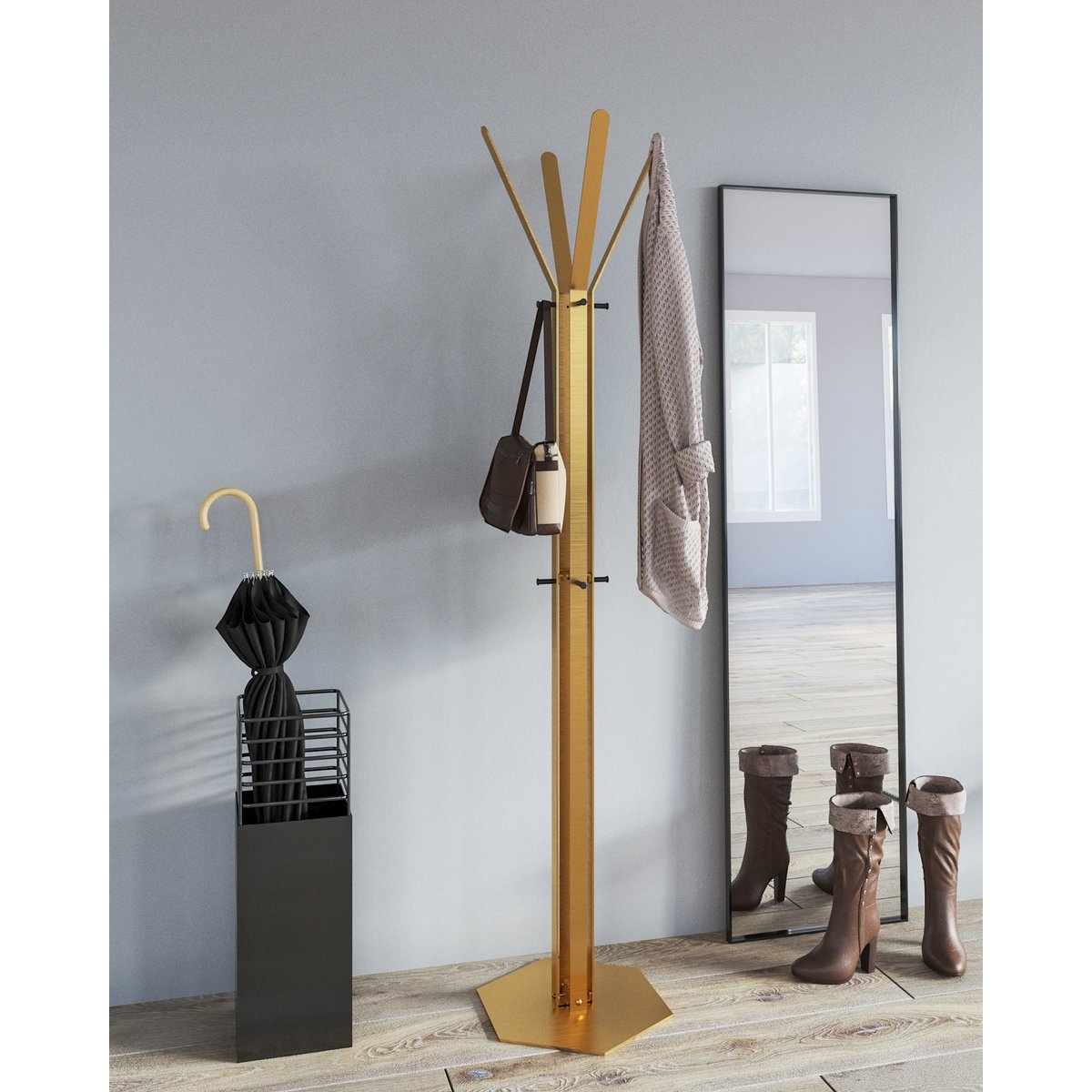 Het is gemaakt van hoogwaardig staal en gaat eeuwig mee. De zeshoek poot zorgt voor optimale stabiliteit en in combinatie met de zeshoek poot krijgt de kapstok een hogere draaglast. Deze ideale kapstok is uitermate geschikt om al uw prachtige jassen, sjaal, rugzakken en andere kledingstukken aan op te hangen!