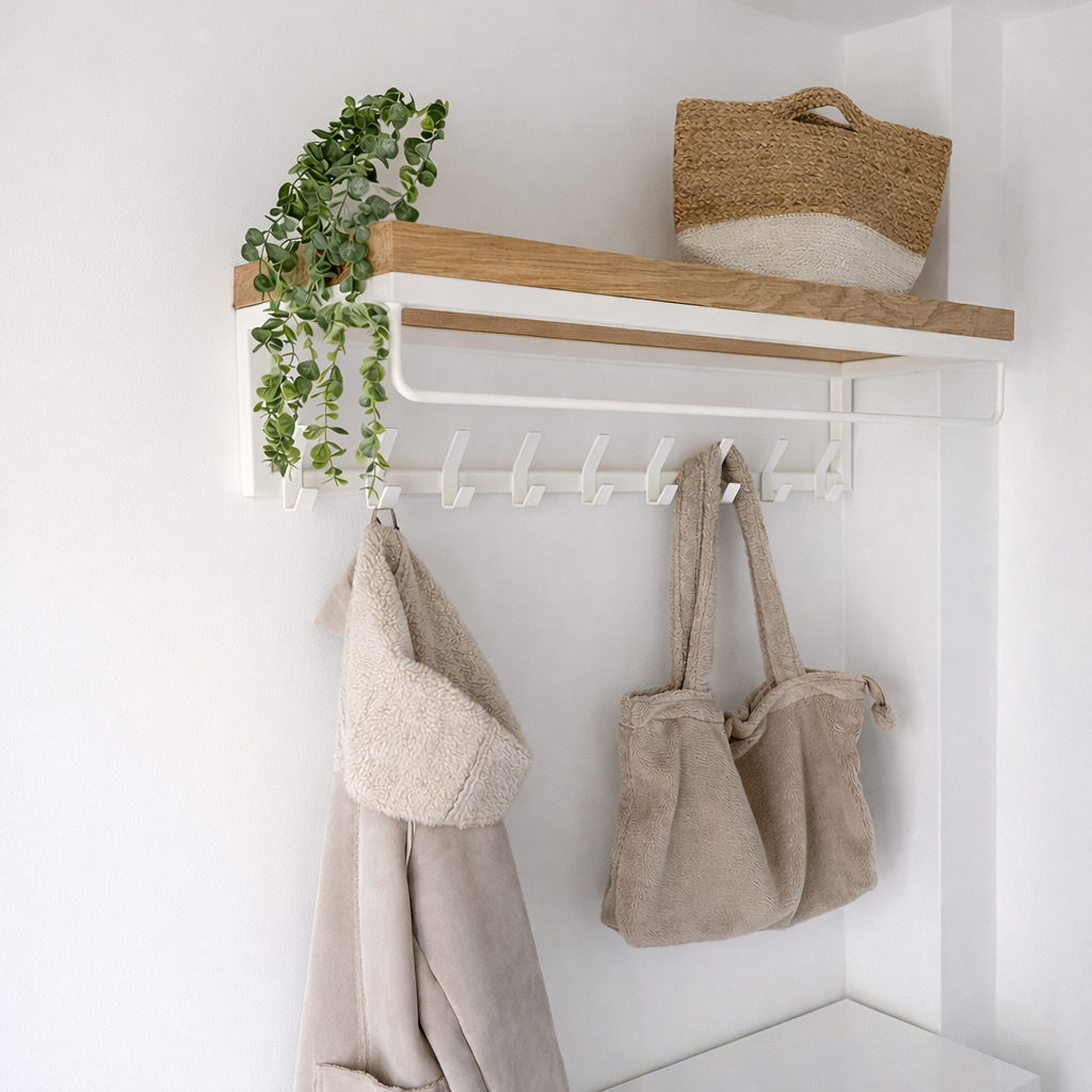 Kies voor een eiken kapstok die vakmanschap en stijl combineert – perfect voor elke entree!
