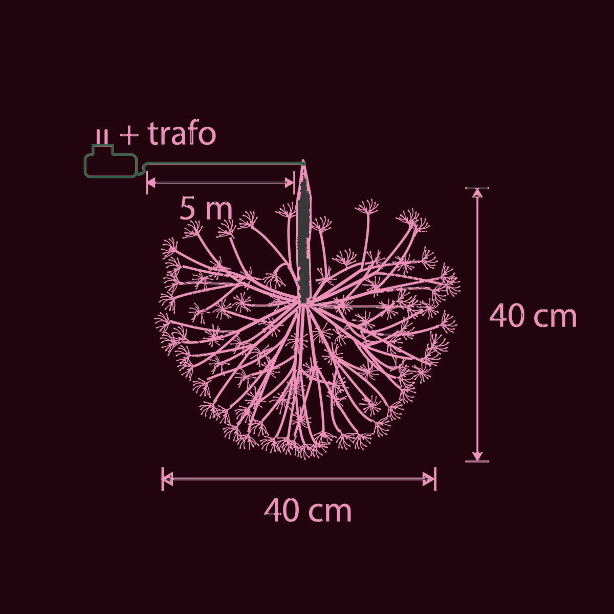 Zorg voor sfeer in je voor- of achtertuin met deze kerstverlichting bal van Luca Lighting. Deze tuinverlichting heeft 576 micro LED-lampjes die warm wit licht uitstralen. De lichtbal heeft een zwart snoer, van maar liefst 5 meter, met aan het einde van het snoer een IP44 stekker. Hierdoor is hij spatwaterdicht! Door het ontwerp van kleine lichtjes lijkt het net een lichtgevende paardenbloem - prachtig! Hang hem onder de verkapping, de schuur of aan een tak van een boom. De tuinlamp heeft een diameter van 40 cm.