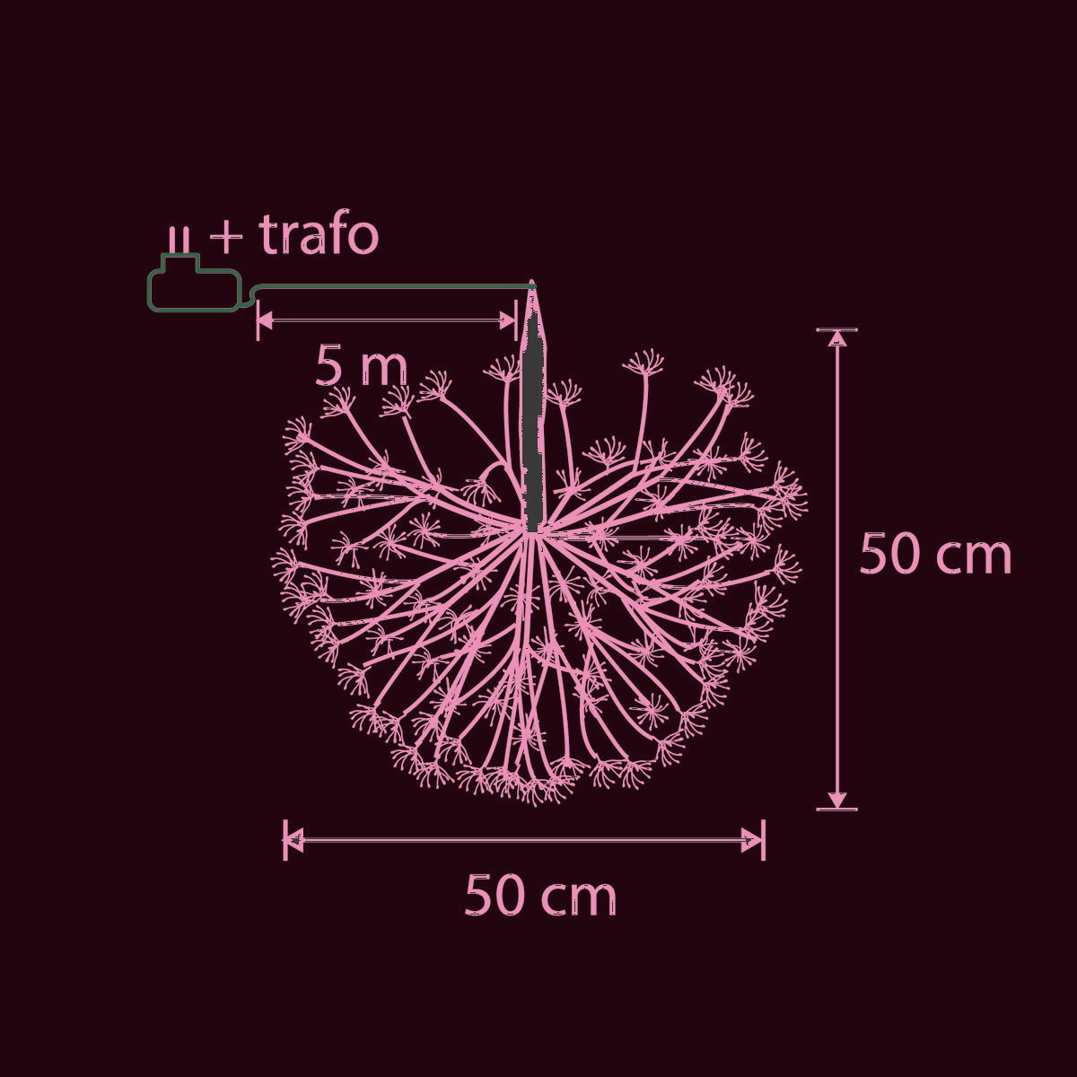 Zorg voor sfeer in je voor- of achtertuin met deze kerstverlichting bal van Luca Lighting. Deze tuinverlichting heeft 912 micro LED-lampjes die warm wit licht uitstralen. De lichtbal heeft een zwart snoer, van maar liefst 5 meter, met aan het einde van het snoer een IP44 stekker. Hierdoor is hij spatwaterdicht! Door het ontwerp van kleine lichtjes lijkt het net een lichtgevende paardenbloem - prachtig! Hang hem onder de verkapping, de schuur of aan een tak van een boom. De tuinlamp heeft een diameter van 50 cm.