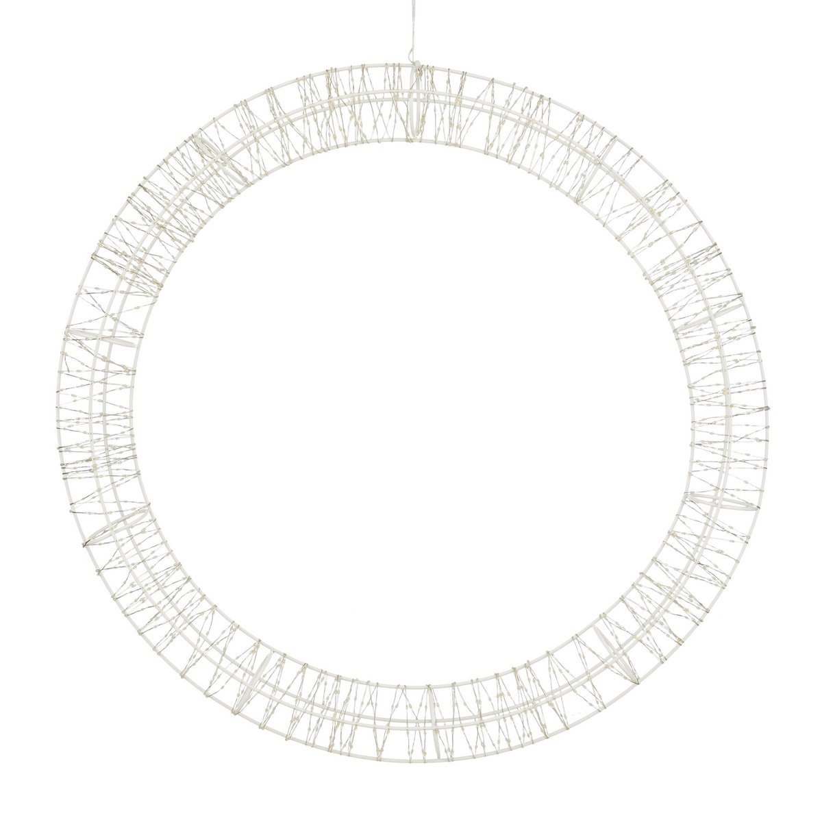 Met deze cirkelvormige kerstverlichting van Luca Lighting geef je een gezellige sfeer aan jouw buitenruimte. De tuinverlichting hang je mooi aan je voor- of achterdeur, onder een verkapping of aan een tak in een boom. Het buitenlicht is wit en geeft warm wit licht. Er zitten 1200 LED-lampjes op die werken door de IP44 stekker. Hierdoor is de verlichting spatwaterdicht en kun je hem onbezorgd buiten laten hangen. Daarnaast heeft de kerstverlichting ook een timerfunctie - ideaal! Ook leuk: hang hem binnen voor het raam, als raamdecoratie. De cirkel heeft een diameter van 56 cm met een snoer van 300 cm.