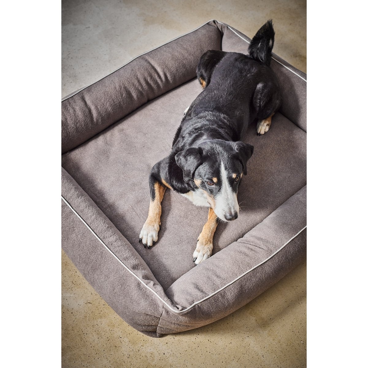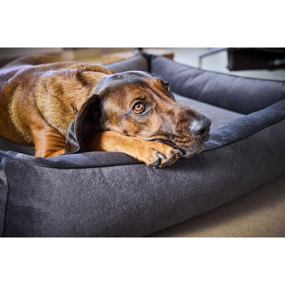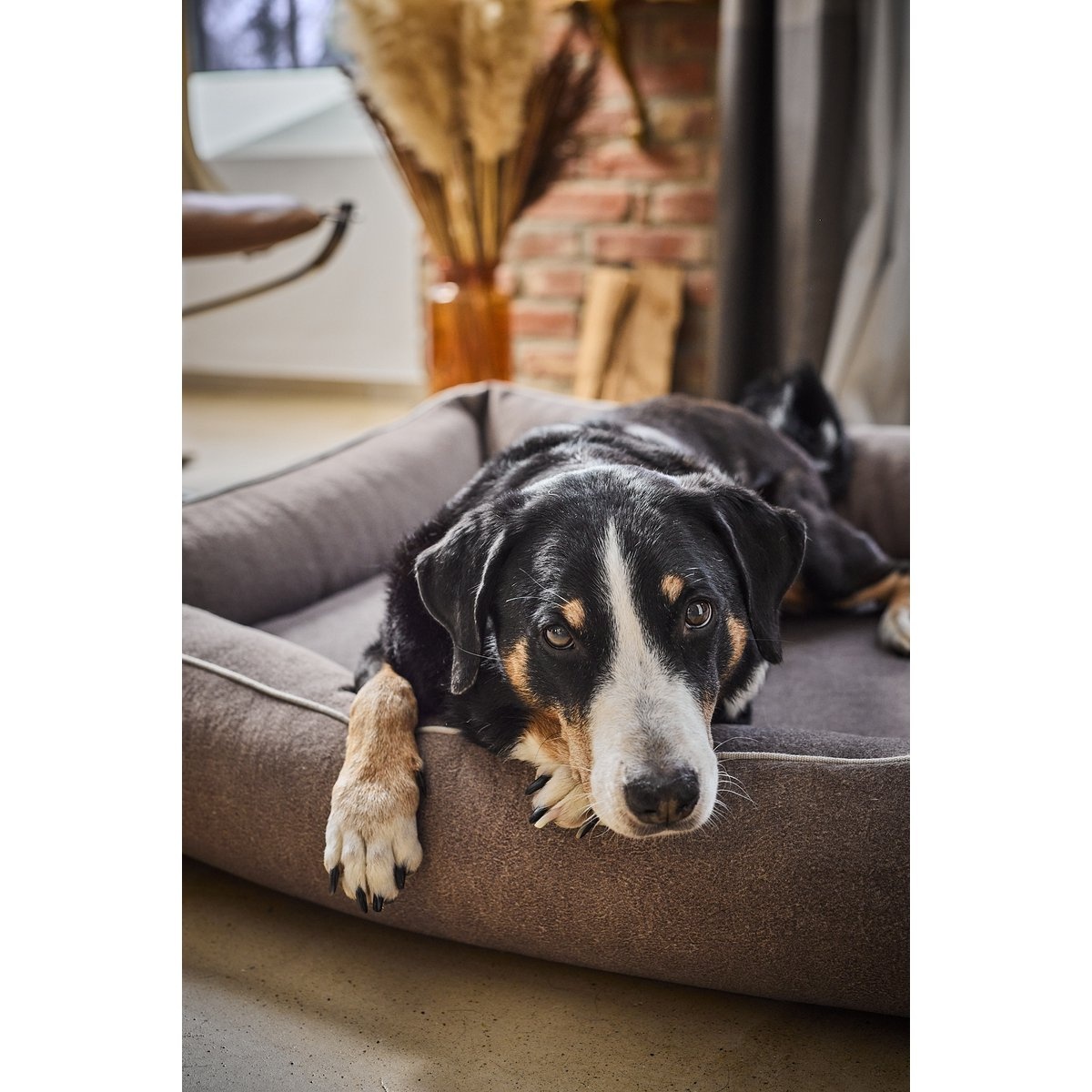 Het elegante hondenbed BUFFALO in hoogwaardige vintage leerlook is een designstatement in elk hondenhuishouden. Het exclusieve hondenbed verrast met een fluweelzacht oppervlak en een stevige grip en is een heerlijk knuffelbed voor uw hond. De prijs is inclusief 2 matrassen: de dik gevoerde ECO COMFORT-matras en de LABONI OrthoMattress, een innovatieve hightech matras van speciaal schuim die veel voordelen biedt ten opzichte van conventionele orthopedische matrassen van viscoschuim. Of het nu gaat om preventieve zorg bij jonge honden of om verlichting te bieden bij oudere honden - de LABONI OrthoMattress is ideaal voor het voorkomen van gewrichtsproblemen en verdere schade bij de diagnose artrose, heupgewrichtsdysplasie (HD), elleboogdysplasie (ED) of klachten veroorzaakt door slijtage en scheur in de wervelkolom (spondylose). Maar ook iedere gezonde hond waardeert het comfortabele ligcomfort.