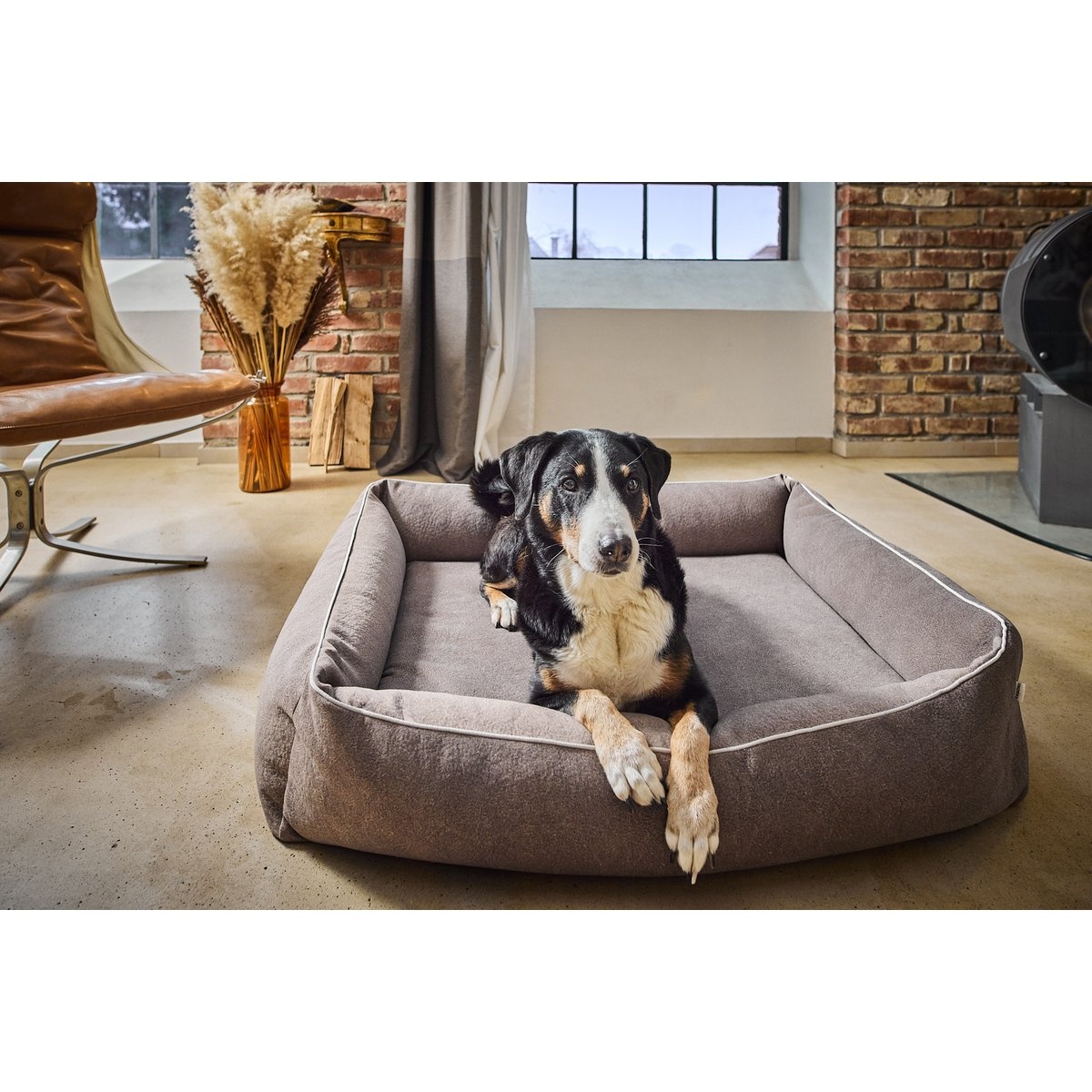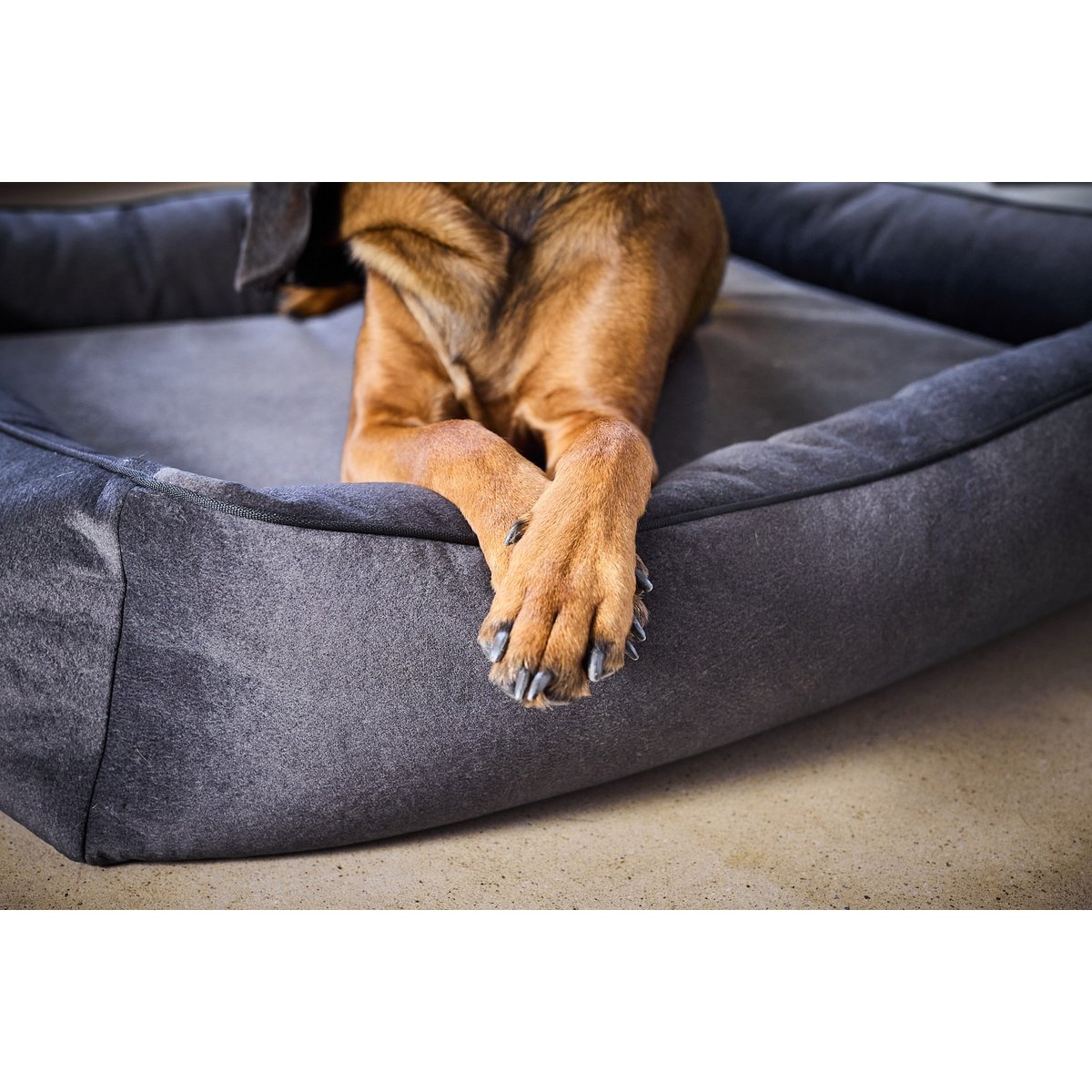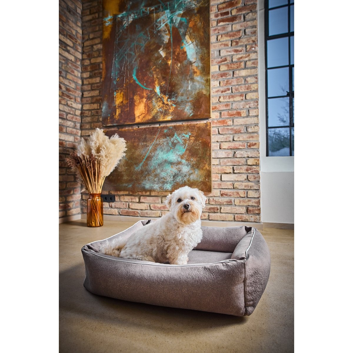 Het elegante hondenbed BUFFALO in hoogwaardige vintage leerlook is een designstatement in elk hondenhuishouden. Het exclusieve hondenbed verrast met een fluweelzacht oppervlak en een stevige grip en is een heerlijk knuffelbed voor uw hond. De prijs is inclusief 2 matrassen: de dik gevoerde ECO COMFORT-matras en de LABONI OrthoMattress, een innovatieve hightech matras van speciaal schuim die veel voordelen biedt ten opzichte van conventionele orthopedische matrassen van viscoschuim. Of het nu gaat om preventieve zorg bij jonge honden of om verlichting te bieden bij oudere honden - de LABONI OrthoMattress is ideaal voor het voorkomen van gewrichtsproblemen en verdere schade bij de diagnose artrose, heupgewrichtsdysplasie (HD), elleboogdysplasie (ED) of klachten veroorzaakt door slijtage en scheur in de wervelkolom (spondylose). Maar ook iedere gezonde hond waardeert het comfortabele ligcomfort.